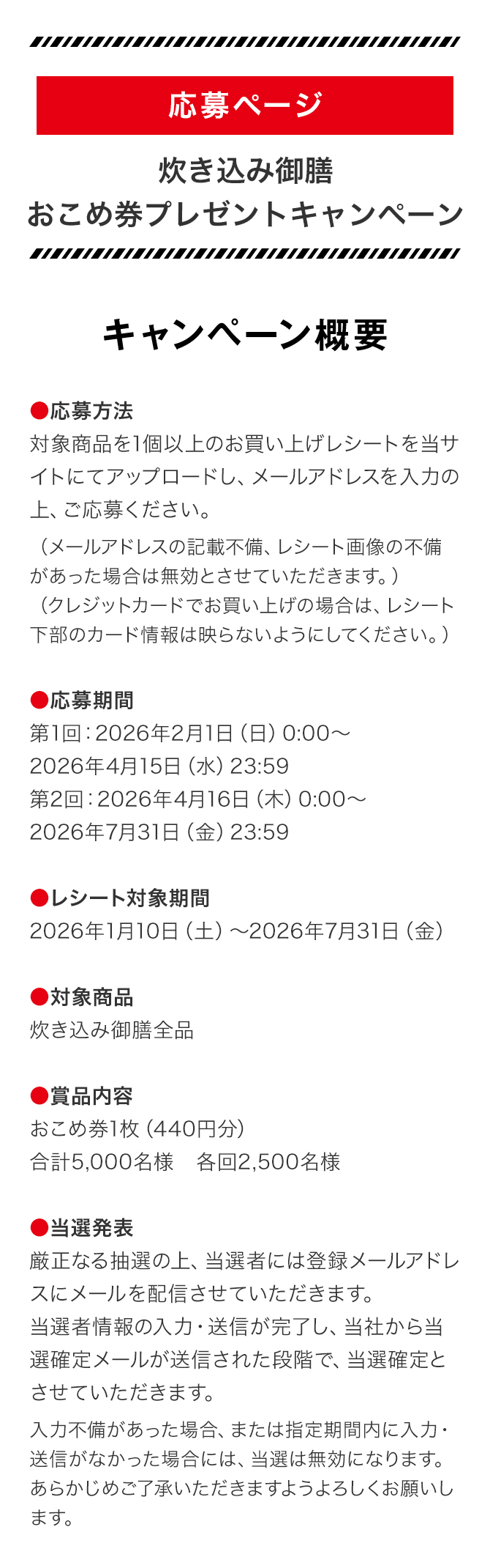 対象商品を購入された場合でも、「受付可能な対象商品名」以外の商品名でレシートに記載されている場合は無効になりますのでご注意ください。
